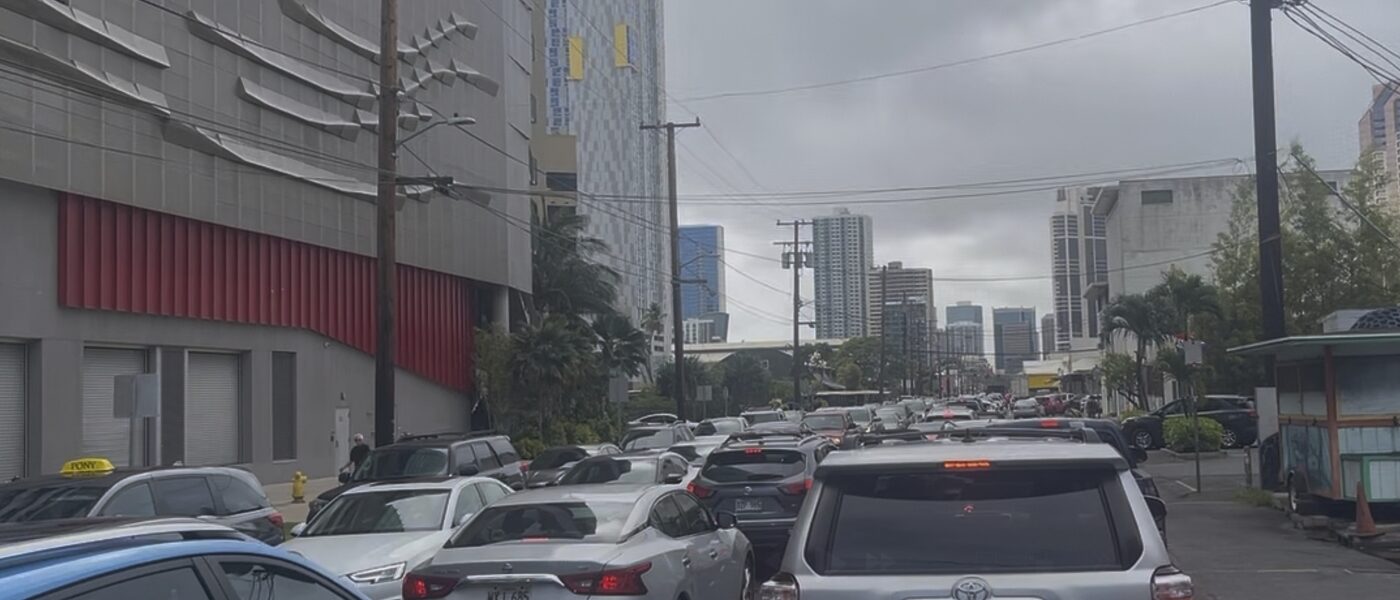 Автомобили заполнили улицы и шоссе в столице Гавайев, с пробками даже в районах вдали от побережья.